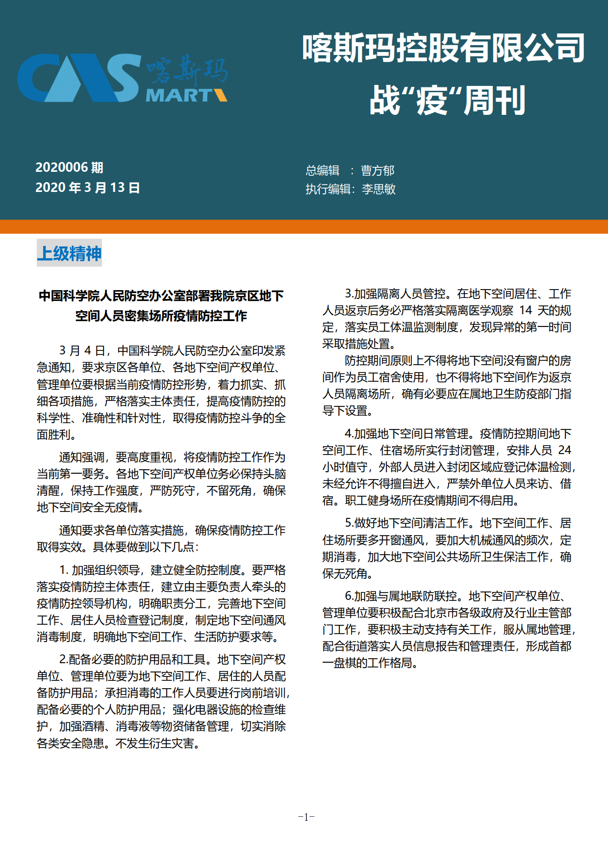 喀斯瑪控股有限公司戰(zhàn)“疫”周刊2020006期